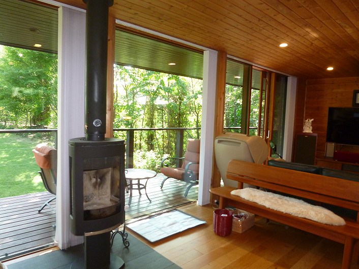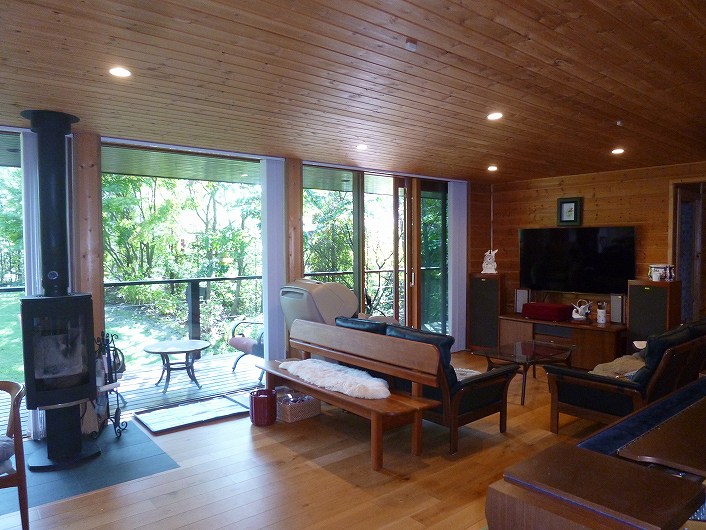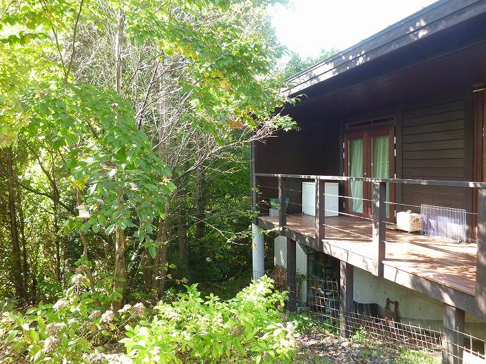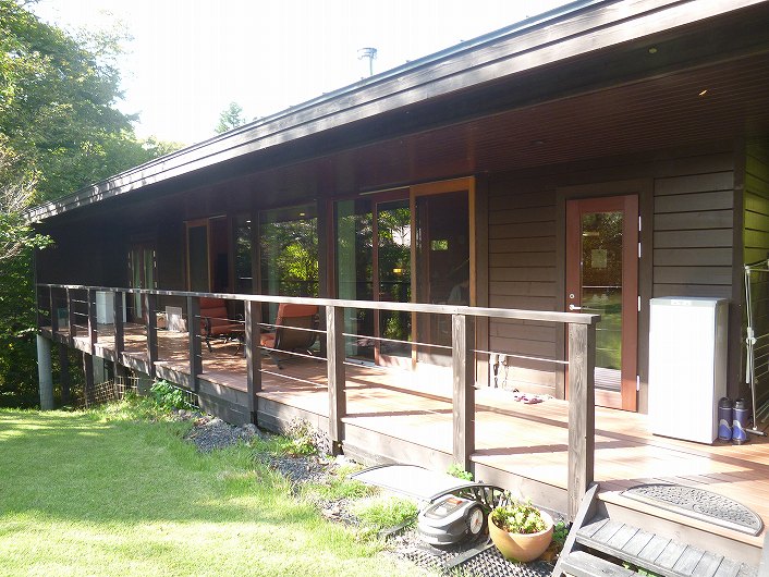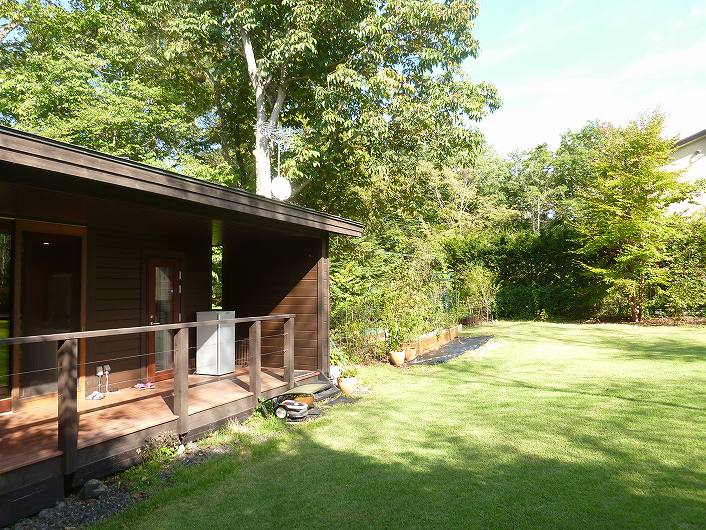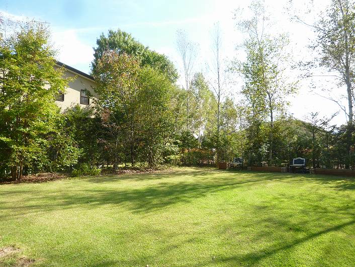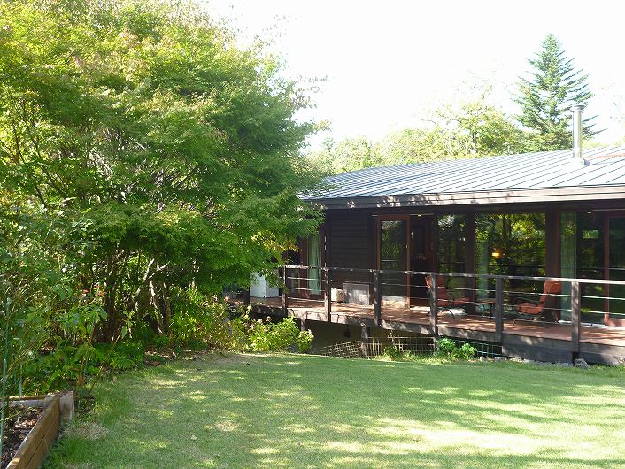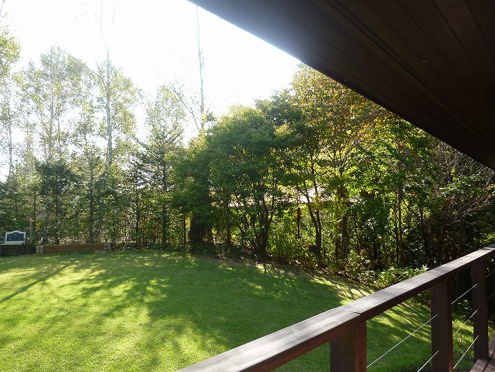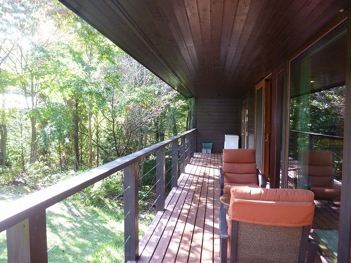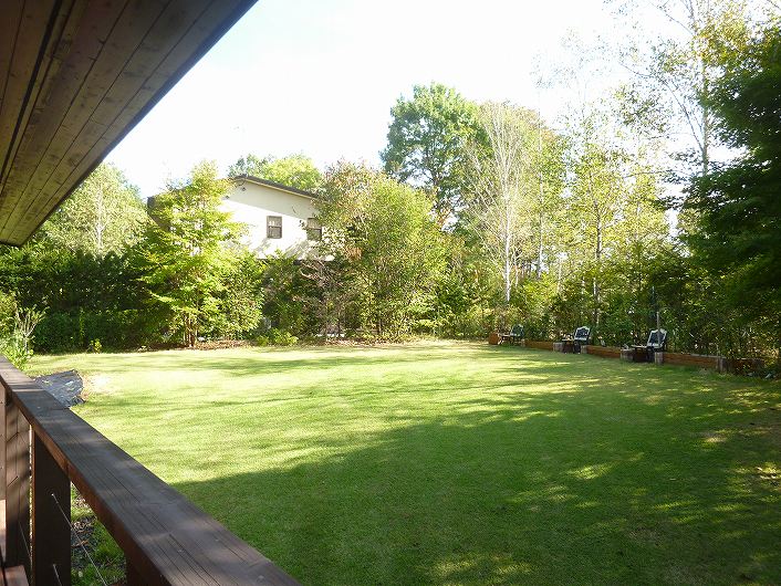 塩沢湖やアウトレット等アクセス良い立地 閑静な白樺台別荘地。 デッキから望むお庭はプライベート感あり、都会の喧騒を忘れさせてくれます。