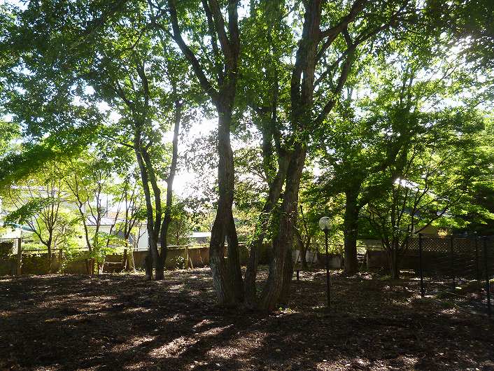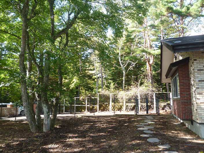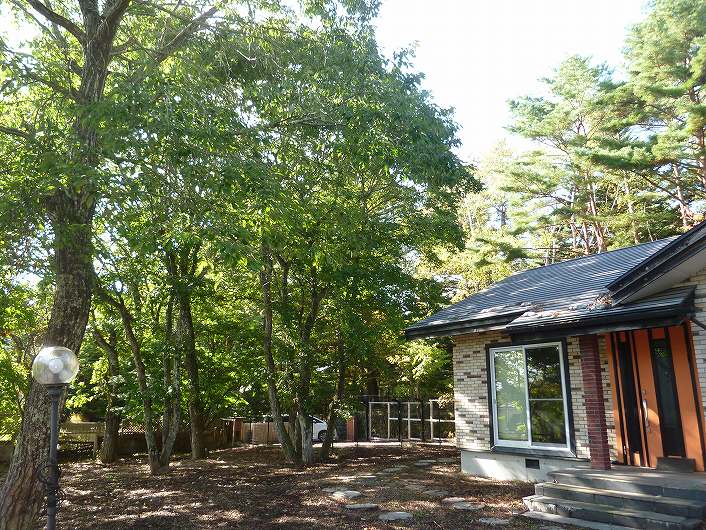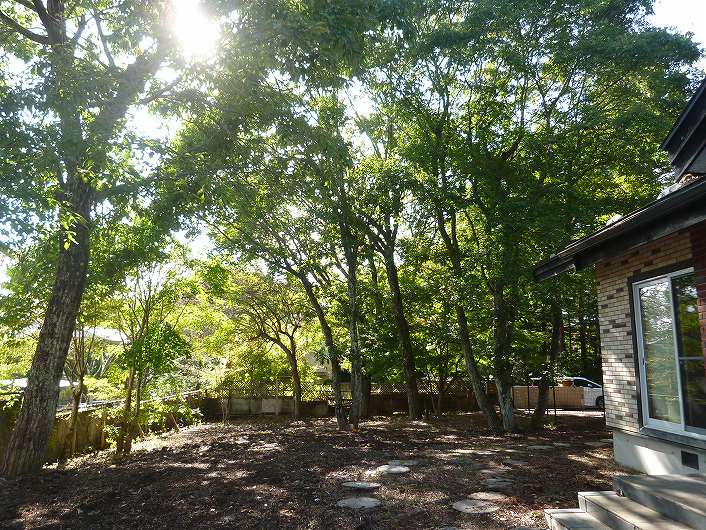 定住者の多い大日向エリア、浅間ふれあい公園も徒歩約1分です。 敷地内には落葉樹も多く、 別荘としてもおすすめです。